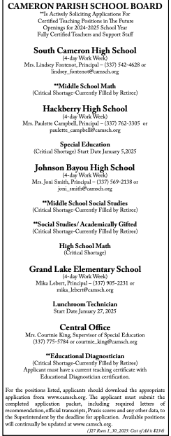 J-27 February 16, 2025 Cameron Pilot Legals 0 Subscribe to the CameronPilot.com and get Unlimited access to all content.